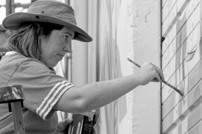 A few evenings ago I drove up to Juan’s Mexican Diner for a taco and a beer. On my way home I remembered I wanted some ranch beans, so I stopped by the Smith’s grocery store on my way home. As I pulled in to the lot, I noticed two artists working on a mural.