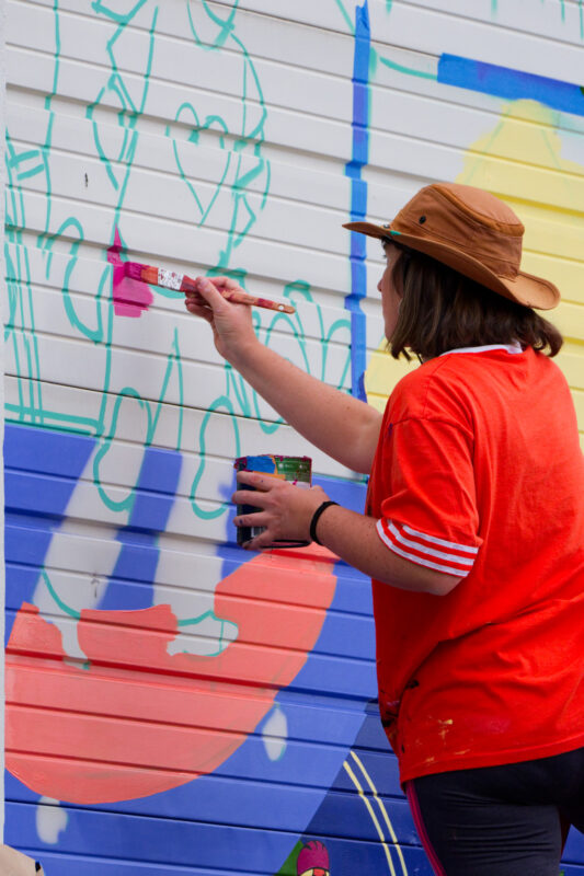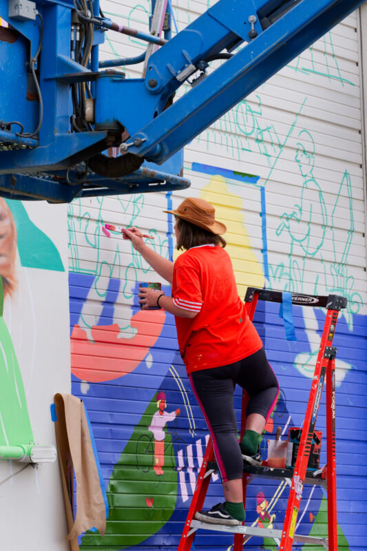 Here is another frame of the Basque mural artist working. Again, she was unaware of my presence at this point. She was very focused on her work. It is something that I admire.