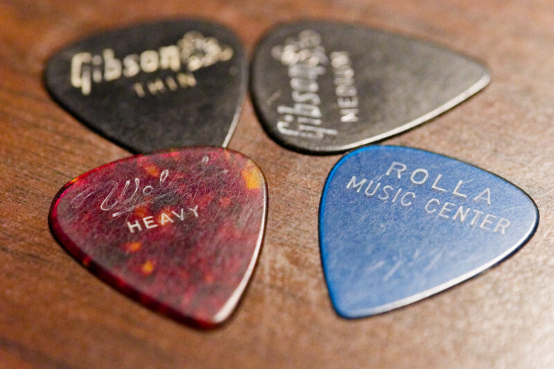 The Dunlop Tortex will be retained and used as they make some of the best tone, in my opinion. I will keep the Rolla Music Center pick as well. It is a memento of a time long, long ago.