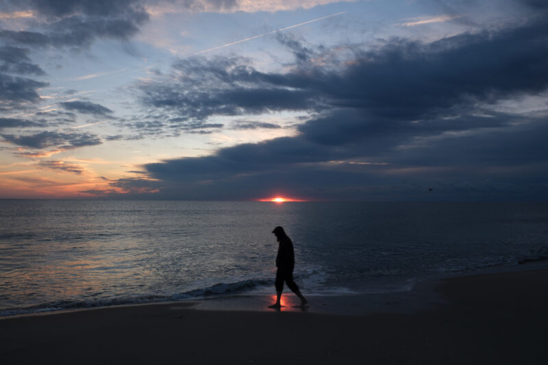 While visiting Towers Beach, my son crossed in front of the reflection of the Sun. Captured with X-T5, 2025-10-26 04:22:46, 18mm, 1/38sec, f/8, ISO-125, SOOC.