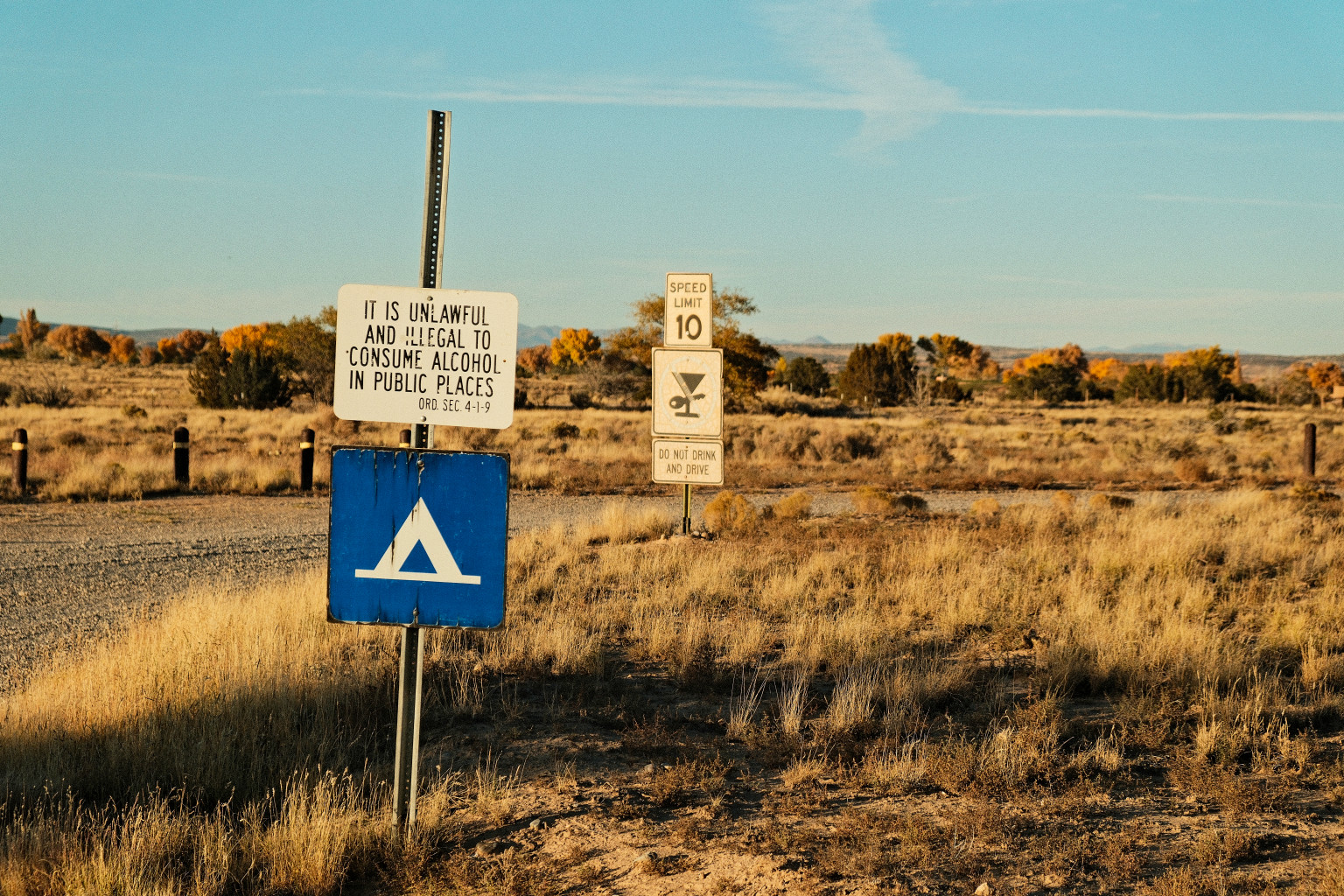 The image is from my return trip from the east. I spent the night at the Coronado campground in Bernalillo, New Mexico. As I walked The Girl through the park, I noticed this sign and wondered at the juxtaposition of words. They seem redundant to me.
